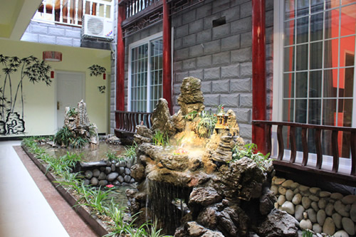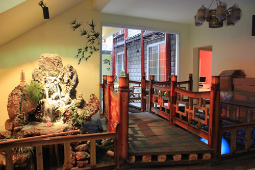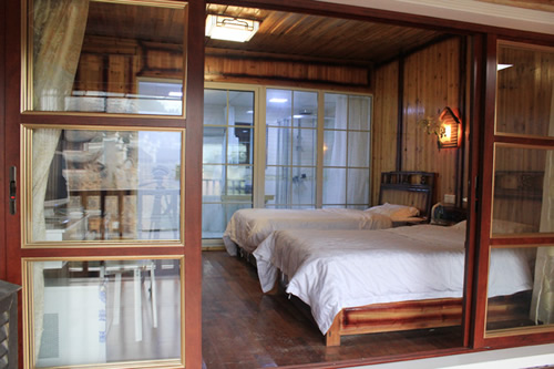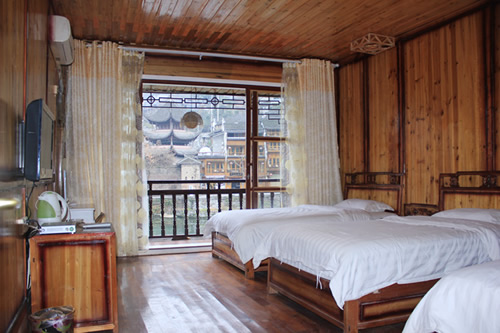 古樸的客房?jī)?nèi),超大陽(yáng)臺(tái)全景落地窗,是您欣賞沱江風(fēng)光帶首選客棧,兩座百年四合院內(nèi)小橋流水,假山錦鯉,一百三十平米休閑花園別具情調(diào)。紅酒加咖啡的大堂吧、彩色精致的情調(diào)房、古典高雅的臨江觀(guān)景房以及大型公共觀(guān)景平臺(tái),龍閣的點(diǎn)點(diǎn)滴滴都透著出古城的神韻和幽靜,走進(jìn)龍閣客棧,給您一個(gè)完美的鳳凰古城沱江全景!
