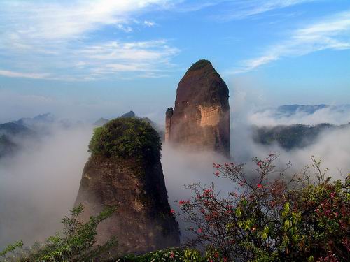| 莨山,位于湖南省新寧縣境內(nèi)。南與桂林相連,北與張家界呼應(yīng),是國內(nèi)最為典型的丹霞地貌風景區(qū),是國家重點風景名勝區(qū),又是國家地質(zhì)公園,總面積108平方公里,轄紫霞峒、 扶夷江、駱駝峰、牛鼻寨、八角寨五大景區(qū),地質(zhì)結(jié)構(gòu)奇特,山、水、林、洞渾然一體。境內(nèi)有形神兼?zhèn)涞膶④娛、惟妙惟肖的駱駝峰、鬼斧神工?天下第一巷"、地造天設(shè)的鯨魚鬧海、氣勢磅礴堪稱亞洲第一的天生橋、高聳入云而又十分逼真的辣椒峰,這便是嘆為觀止的莨山六絕,這是大自然對莨山的恩賜,每一絕都舉世無雙。莨山還生長繁衍著銀杉、珙桐、華南虎、云豹、靈貓、大鯢等珍稀動植物,也為莨山的天然景色增添了無限靈動與生氣。這里出土有10萬年前的獼猴頭骨化石,有4500年前的新石器文化遺址,有清化農(nóng)民起義的寨堡,有晚清重臣劉坤一、劉長佑、江忠源的宗祠、墓葬,有異彩紛呈的民族風情,有膾炙人口的華采詩賦,明代縣人陳永猷留下了"夫夷(新寧古稱)勝景天成就,攝杖歸來入夢頻"的美譽,著名詩人艾青留下了"桂林山水甲天下,莨山山水賽桂林"的喟嘆。