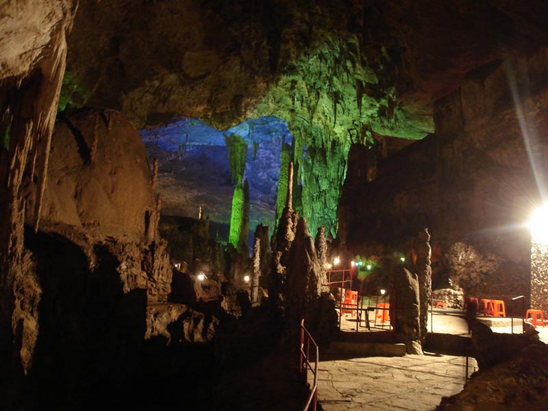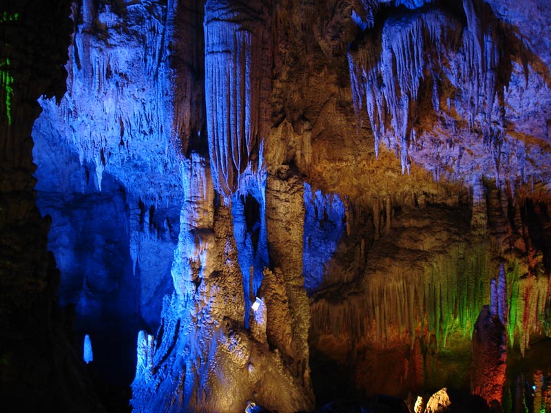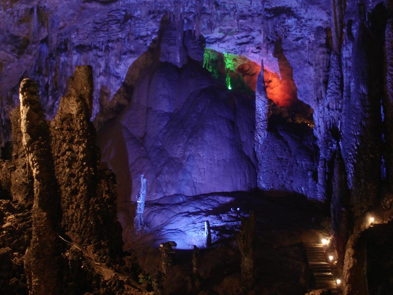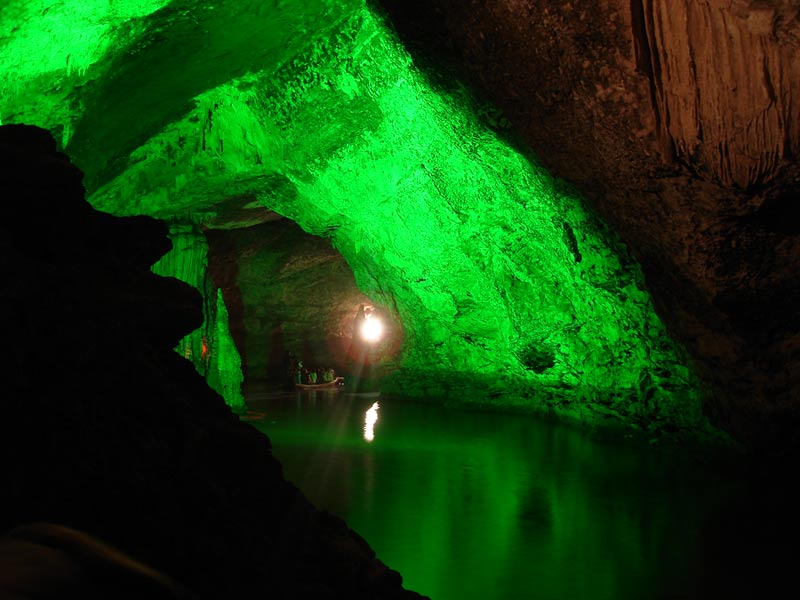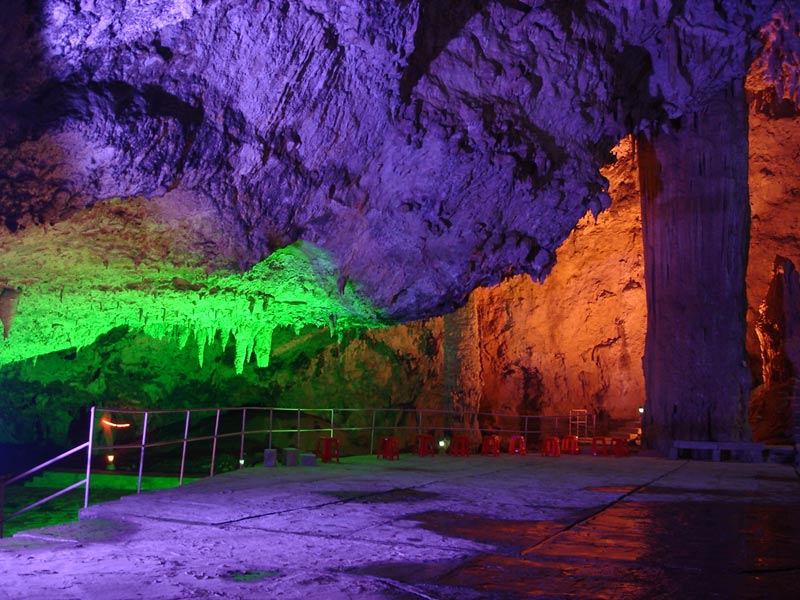 第四絕:九天洞幽 進(jìn)入九天洞如同到了一個(gè)寧?kù)o的世界,在洞內(nèi)讓人有掙脫樊籬,還我自然之感。我們?cè)诙磧?nèi)看到的各式各樣的自然造型,它們是那樣古樸,那樣自然,那樣錯(cuò)落有致,毫無(wú)人工雕鑿與粉飾的痕跡。我們?cè)诙磧?nèi)聽(tīng)到的是潺潺的流水聲與飛燕的撲翅聲,當(dāng)然還有蝙蝠、巨鼠的瞿瞿聲。除此外,洞內(nèi)還有許多南來(lái)北往的通幽曲徑:有的去舞廳,有的進(jìn)城門,有的下暗河,有的上天窗。 |