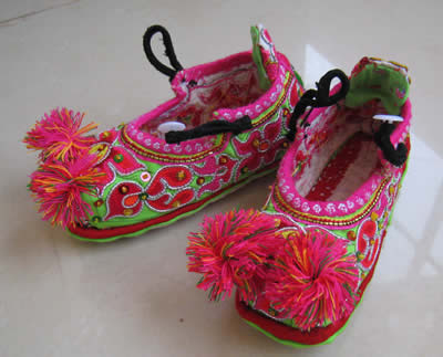 刺繡 刺繡。是土家姑娘在直紋平布上,按照布紋的經(jīng)緯和預(yù)先繪畫的花樣與底色不同的絲線繡成圖案。舊時(shí)姑娘們穿的繡花衣服,繡有服飾花邊、胸花、帽花,此外繡花枕頭、繡花荷包等也是精巧的手工工藝品。土家刺繡在配色上有自己的講究與習(xí)慣,一般選用青、藍(lán)、大紅等深色布料作底布,用淺色繡線制作圖案,或者相反,兩種用法的結(jié)果使繡品顯得質(zhì)樸逼真,色澤鮮艷,對(duì)比強(qiáng)烈。傳統(tǒng)圖案有“花開富貴”、“龍鳳呈祥”、“鴛鴦戲水”、“喜鵲鬧梅”、“松鶴同壽”等,分室內(nèi)、衣著、工具、行李裝飾等多種種類。在景區(qū),土家婦女邊繡邊賣的精美鞋墊,深受海內(nèi)外游客喜愛。